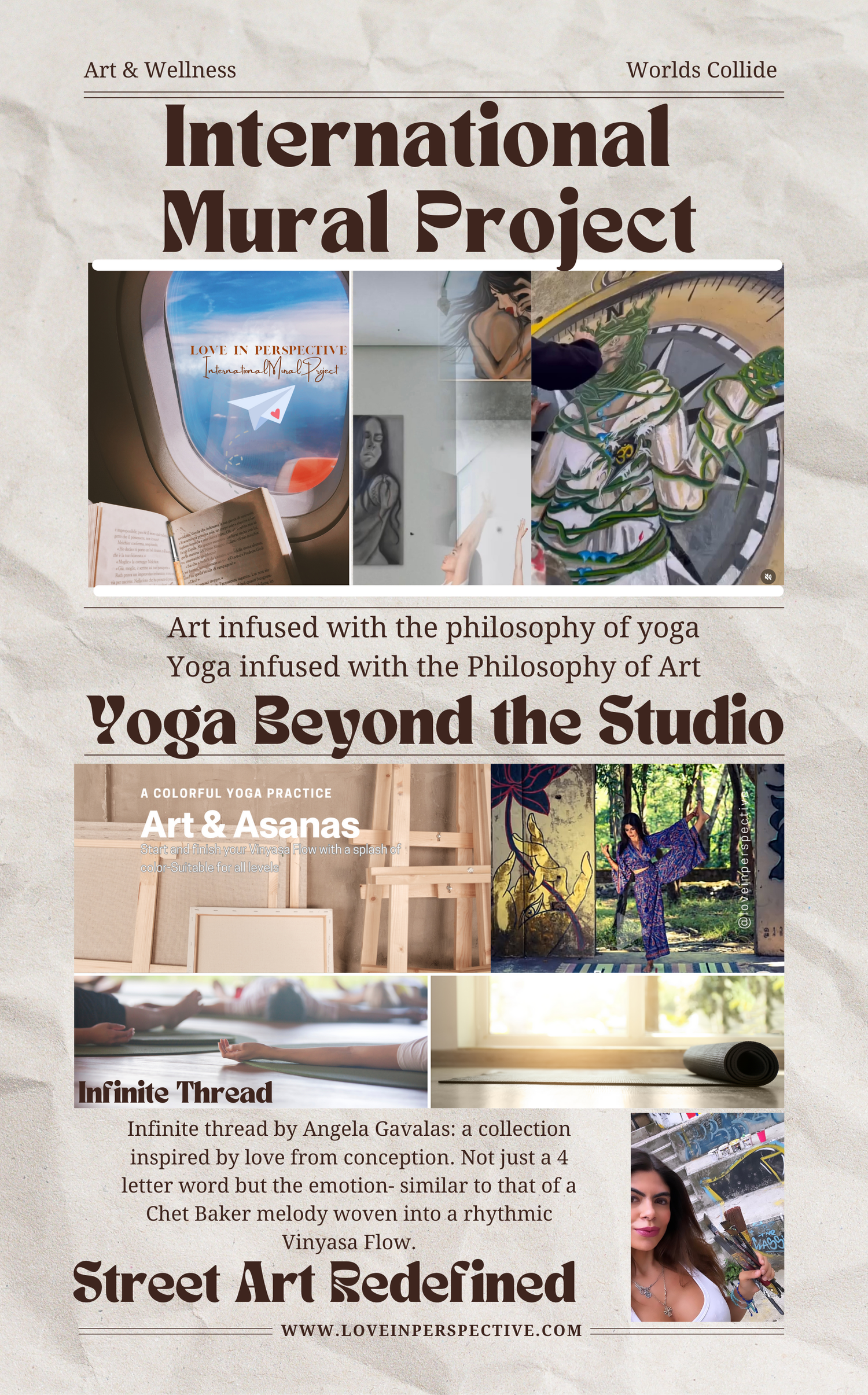 When creating this brand it was important that the foundation was Love. What is love to me and how can I share what I am most passionate about in a way that resonates with my community? My son was one of the inspirations behind this brand. I believe one of the best ways to show our love to those that mean the most is by first showing that same love to ourselves. I do this through the things that set my soul on fire. This brand is where those worlds collide. A destined mix of Art&Wellness. Both yoga & Art have been a big part of my life for over 20 years. I have a degree in design and I am a Yoga alliance certified RYT. I have traveled all over the world learning different techniques to better my yoga practice and teachings with an emphasis on both the postures and philosophy. Travel for me is education because I incorporate culture into everything I do. It’s literally who I am. I myself am a symphony of language, religion and ethnicity. My family is a mix of Greek, Italian and Colombian descent. It’s one of the reasons why I feel like I connect so deeply to all religions and cultures. My souvenir from every destination I create in or practice yoga in is a memory that lengthens my red thread and inspires my way of living, loving and thinking. From our Murals to our classes and product assortment-Love in perspective is and always will be the compass that forever points in the direction of Love.